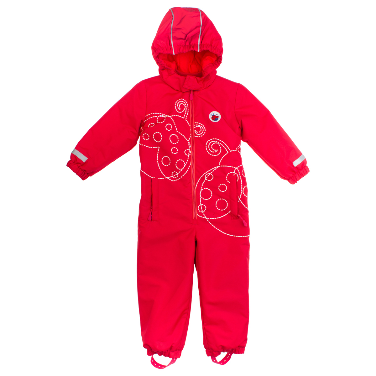 Красивый и яркий комбинезон. Нам понравился! Божья коровка серенькая, а не беленькая. Мы взяли 74 размер, сейчас мы 68, думаю весной ещё носить будем