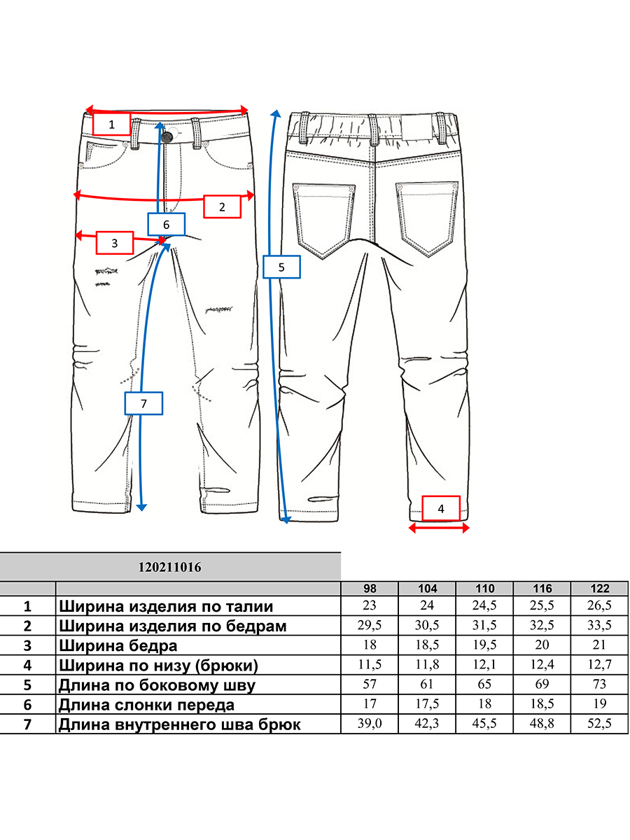 | Размер | 98 | 104 | 110 | 116 | 122 |