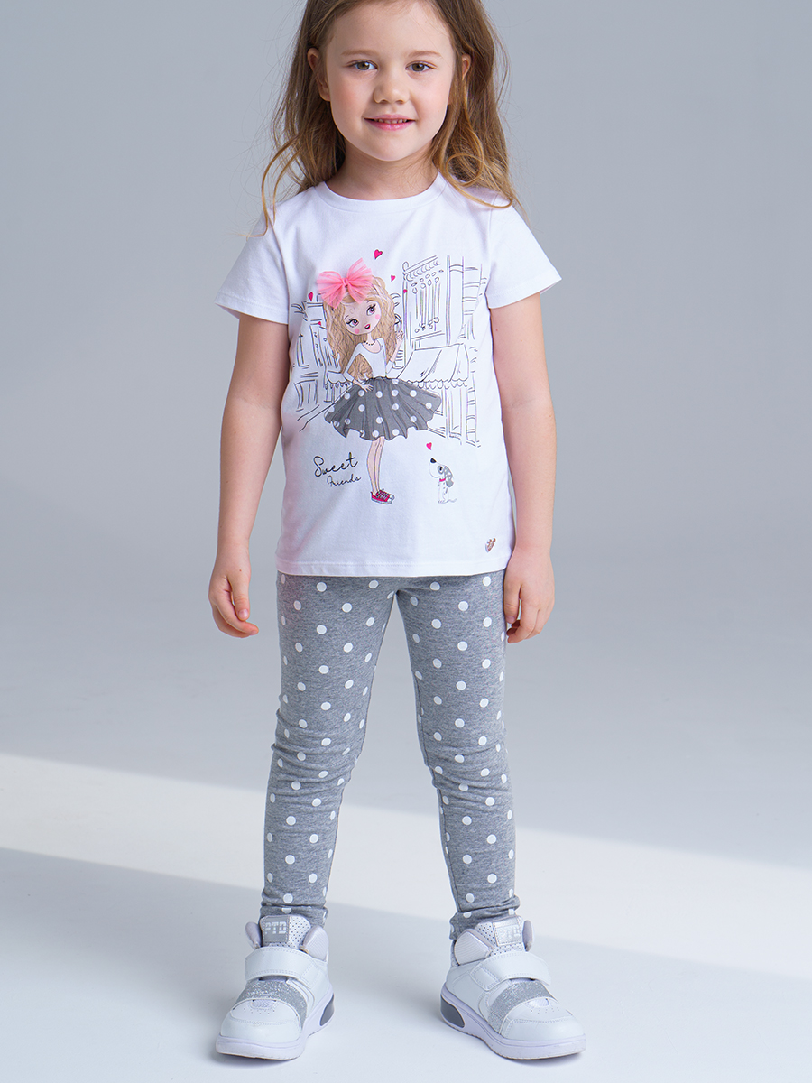 Белый комплект: футболка, легинсы для девочки PlayToday 12122261
