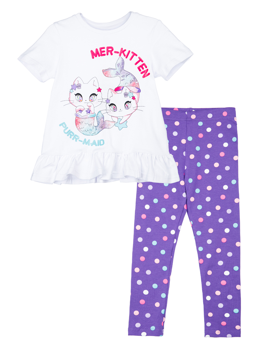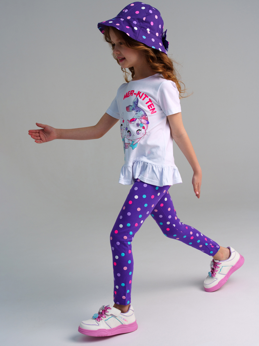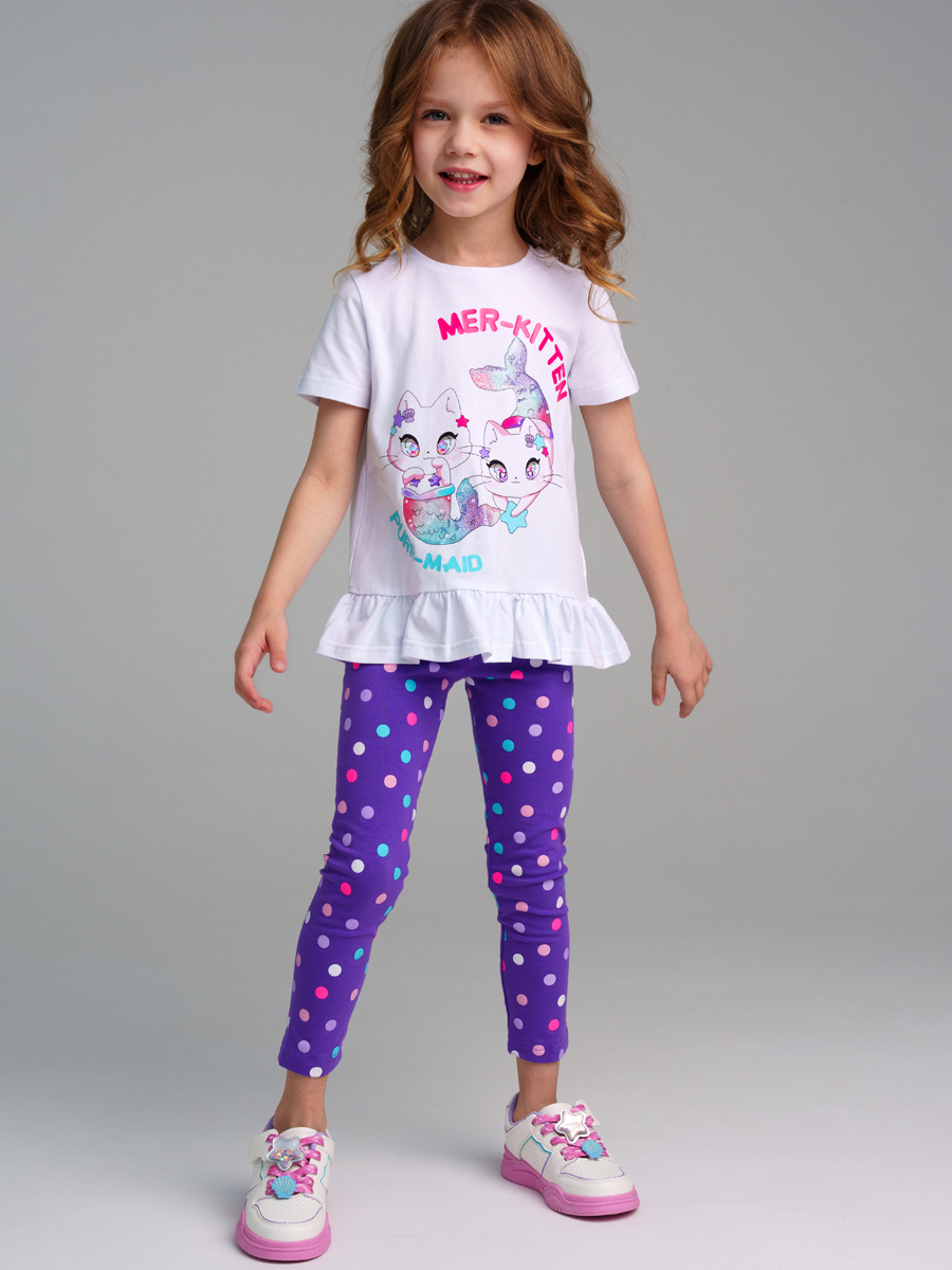 Белый комплект: футболка, легинсы для девочки PlayToday 12422299